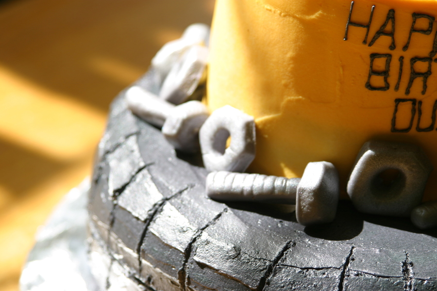 Bottom tier- vanilla cake Top Tier- Orange dreamsicle cake. All Vanilla buttercream. Everything is fondant free except bolts and logo. TFL!