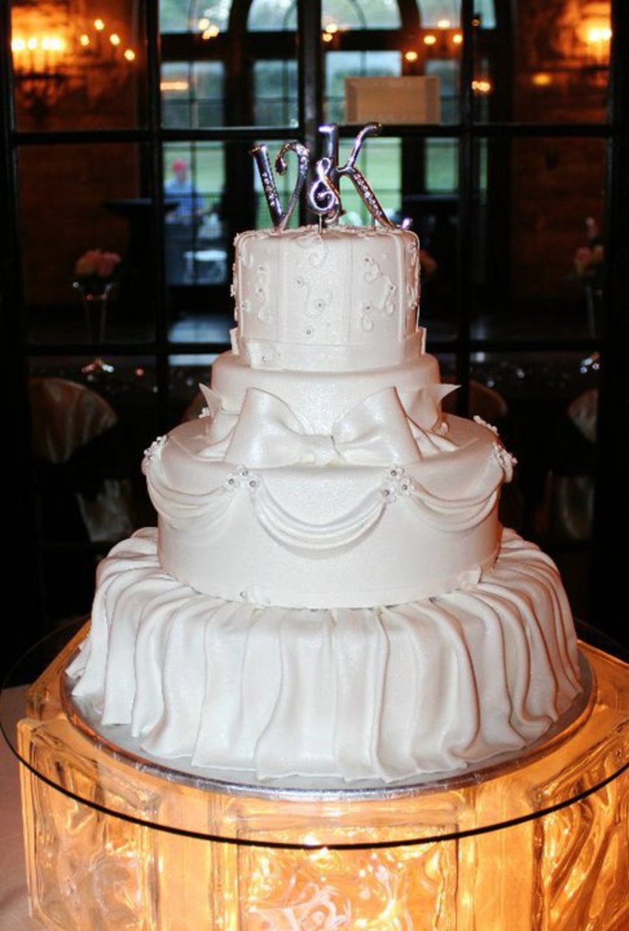 My favorite cake I have made....16, 12, 8,6 All covered with white chocolate fondant. My first fondant skirt and swags. Cake was airbrushed pearl before delivery.