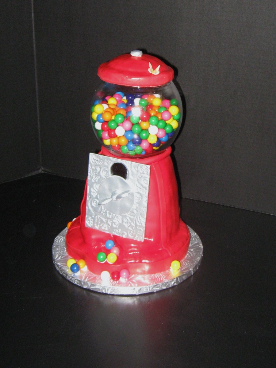 Gum ball machine, red fondant and gumpaste for the silver plate, real gum balls