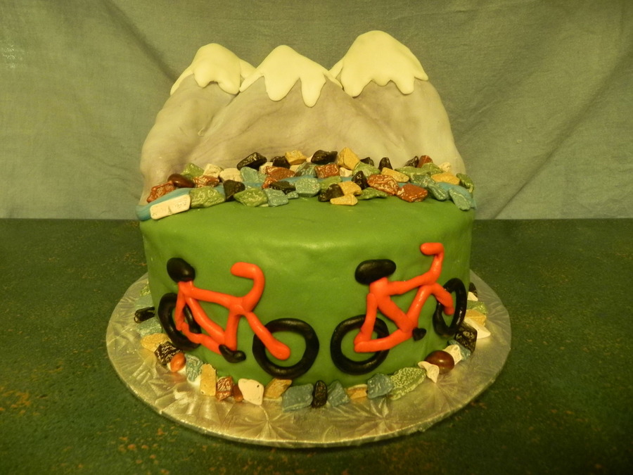 MMF covered cake, RCT Mts. covered in MMF for Anniversary. Candy coated chocolate pebbles.