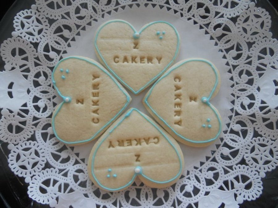 My personalized Z-Cakery sugar cookies outlined with royal icing.