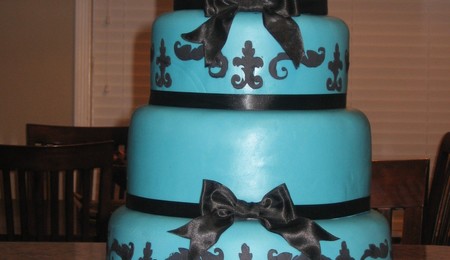 Teal And Black Stencil Wedding Cake