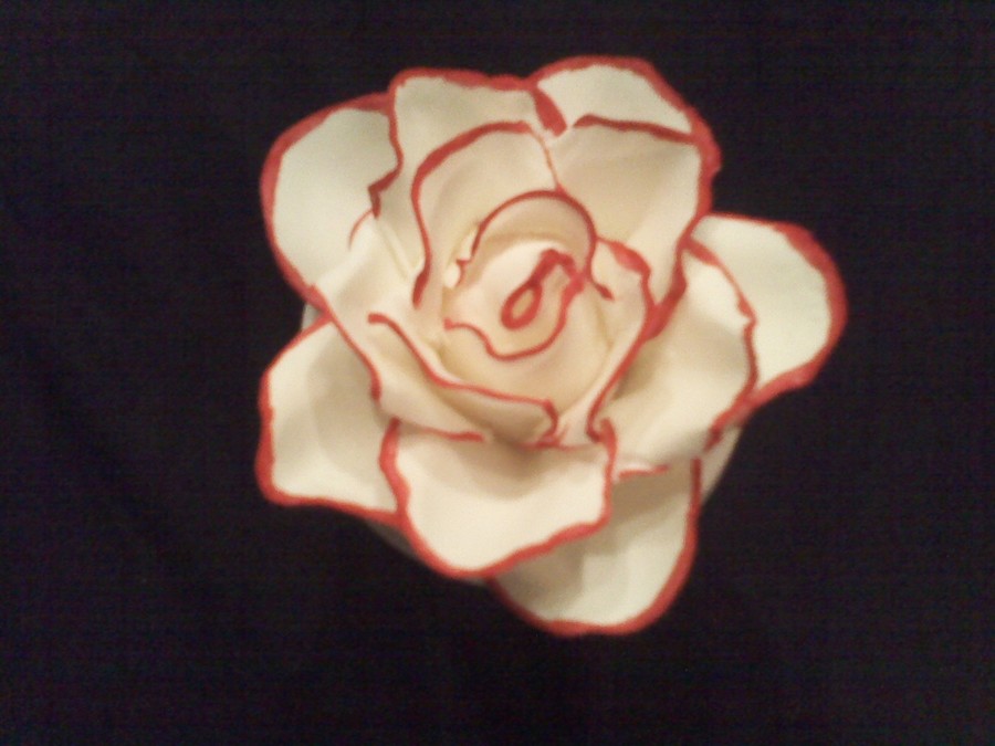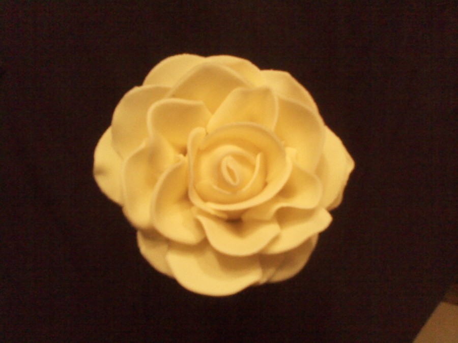 This is the 2nd gumpaste rose that I attempted. I think that it came out pretty good. Thanks Suzisweet for the viedo tutorial!