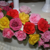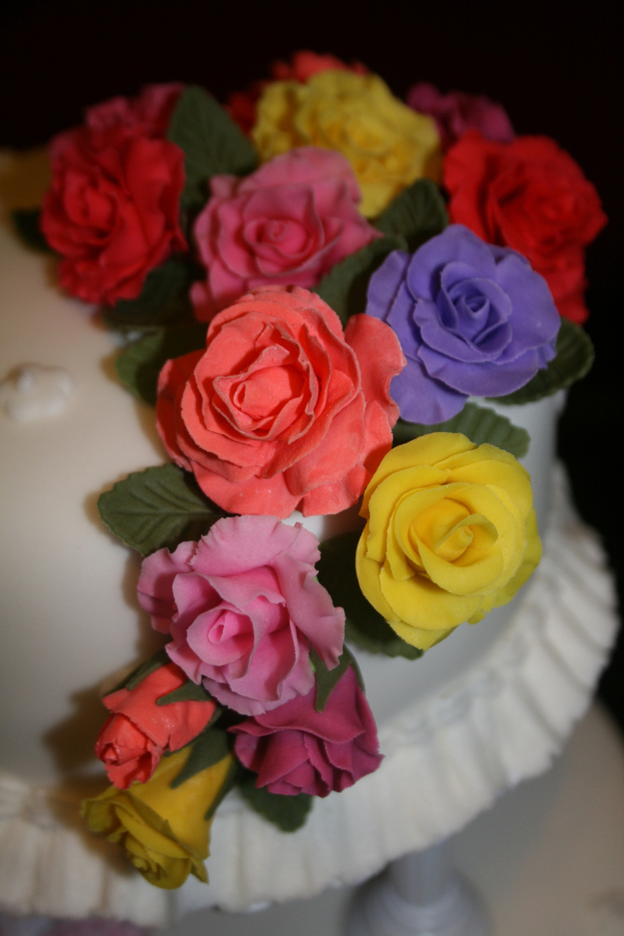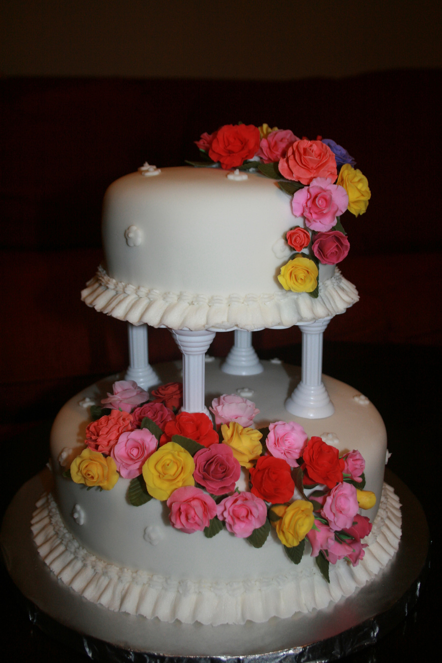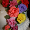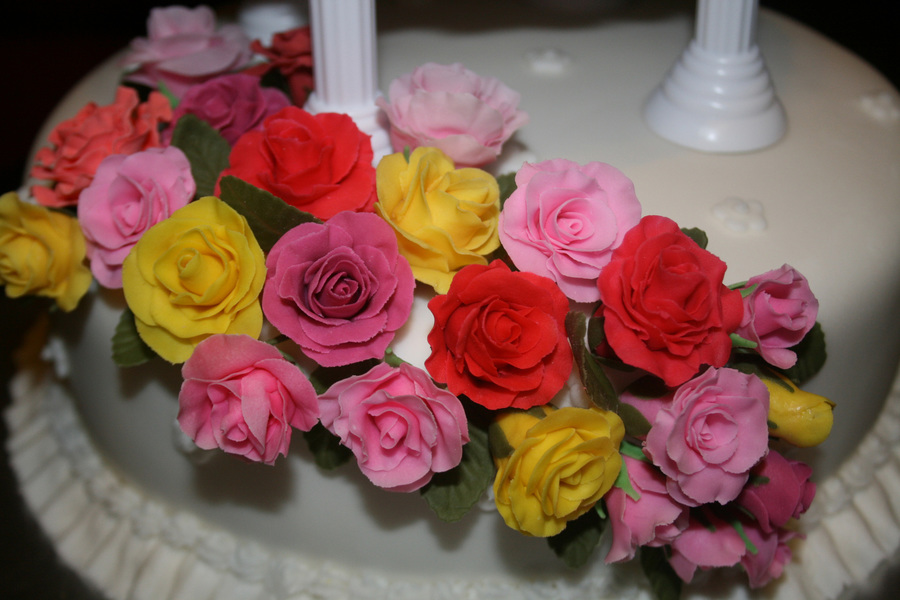 Two-tiered wedding cake with colorful gumpaste roses