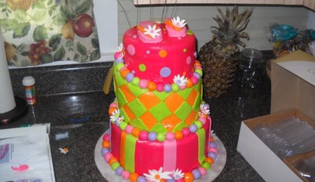 This was my 1st ever decorated cake. My niece needed a cake for her wedding & since I am one who "thinks" I can do anythign took on the task. Oh man & a task it was.I had watched the cake shows on tv & man I found out they take way longer than an hour .lol