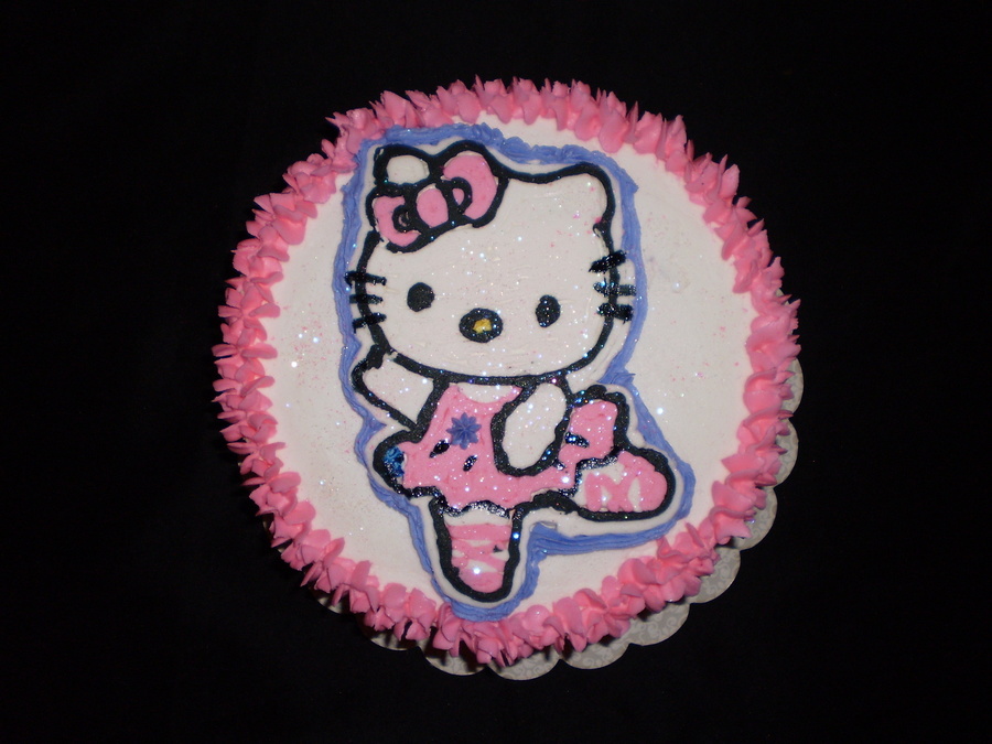 2 layered french vanilla with buttercream icing and buttercream hello Kitty frozen transfer (1st attempt) With edible rainbow sparkles