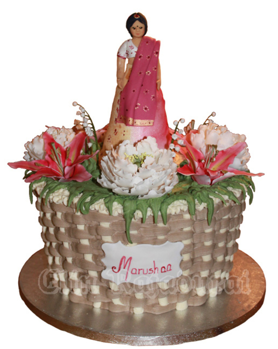 A puberty ceremony cake for a sri lankan girl Flowers and girl in gumpaste