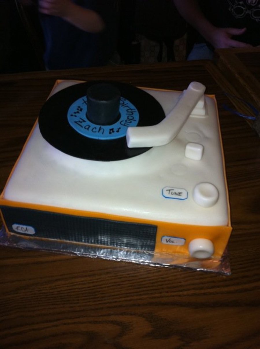 I saw this cake here on CC and I had to make it for my brother in law. He loved it! The arm swiveled and the record was not attatched.