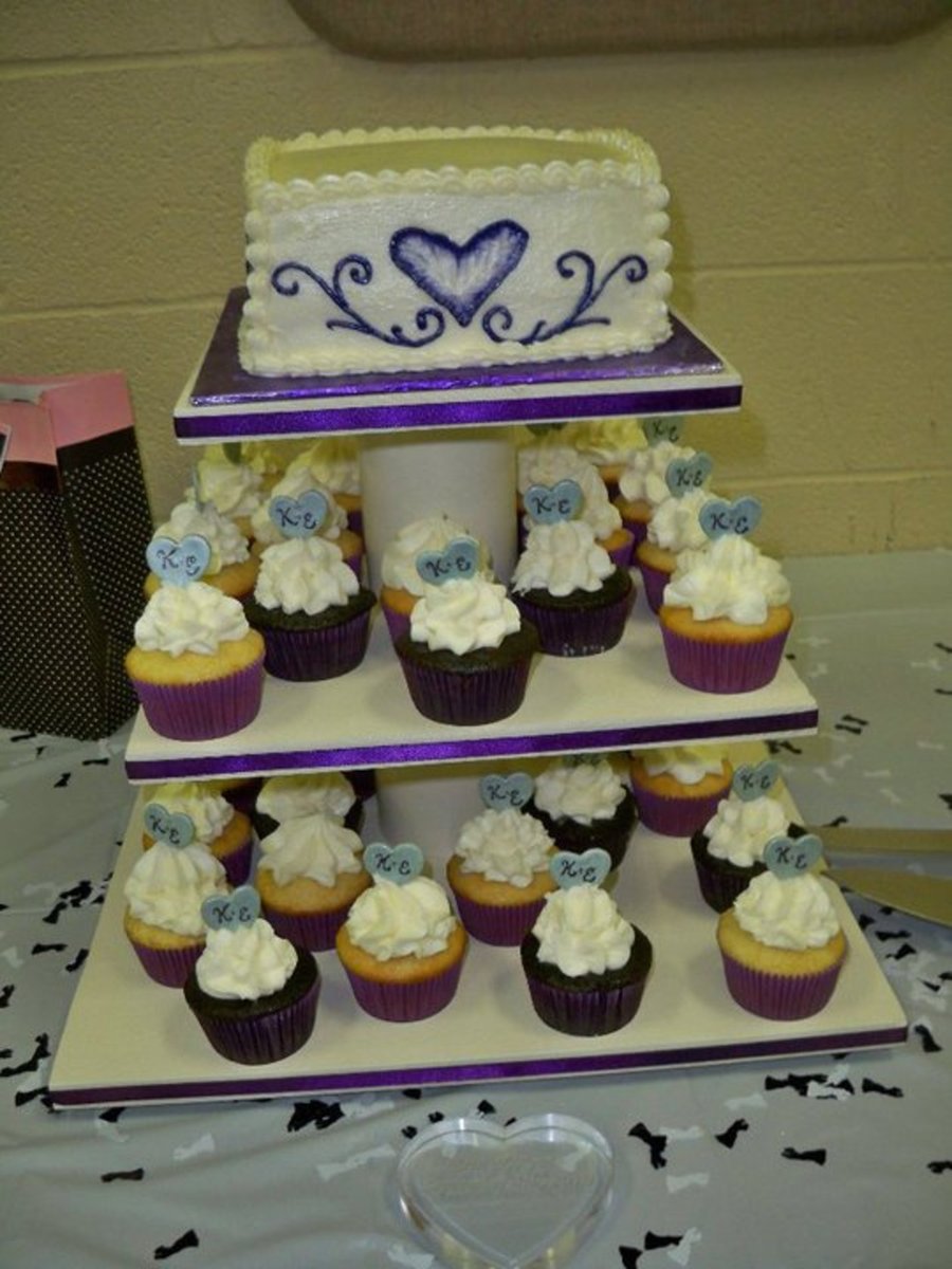 Wasc and chocolate cuppies and chocolate cake all with BC. Hearts made with gumpaste and inscribed with wedding couples initials.