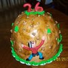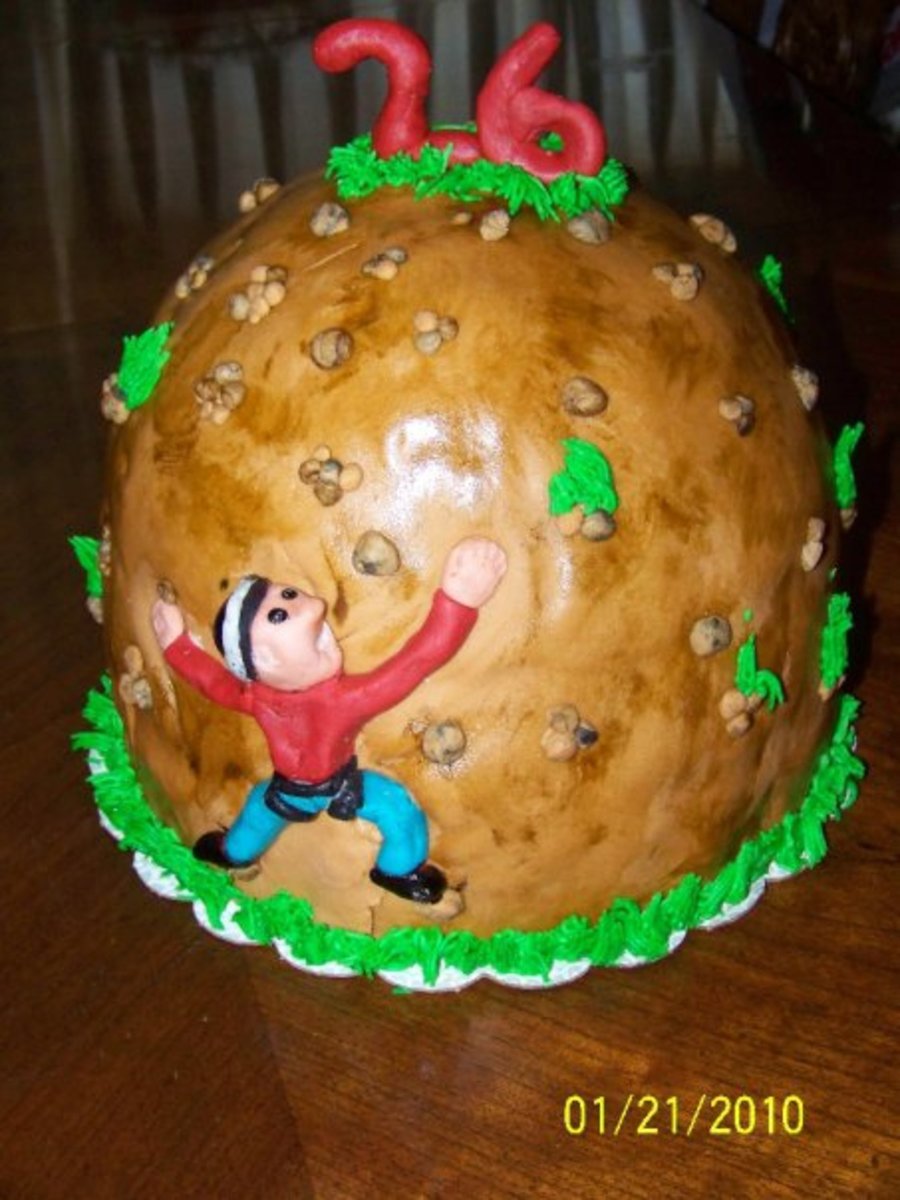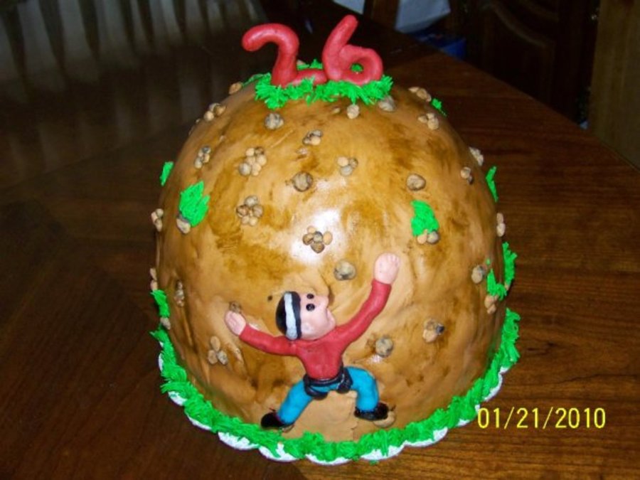 My roommate is an avid rock climber and this was his 26th Bday cake the entire cake was edible including "mini-max"....there WAS a string of black icing around his waist all the way to the 26 on top, but it fell of during delivery to the venue...