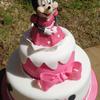 2 tier marble cake with bc icing, covered in fondant with fondant bow. Rice crispie mini body, with a styrafoam head, all of mini is covered in fondant. Head, and ribbon are the only none edible parts.