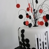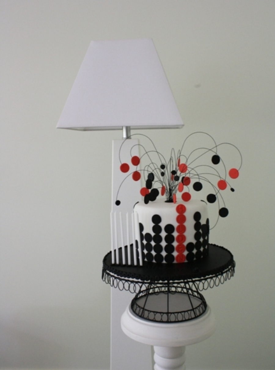 Was asked to make a tall cake for a chap who loves his red black and white Holden car. 3x 3 inch morello cherry chocolate cakes - torted into 6 layers - and filled with dark chocolate ganache. Covered and decorated in Regalice. Red circles are embossed with the letters to spell HOLDEN. Covered cake board in black regalice and embossed Michaels name. Black wires i bent so as to curve - wires placed in flower pick and then inserted into cake.