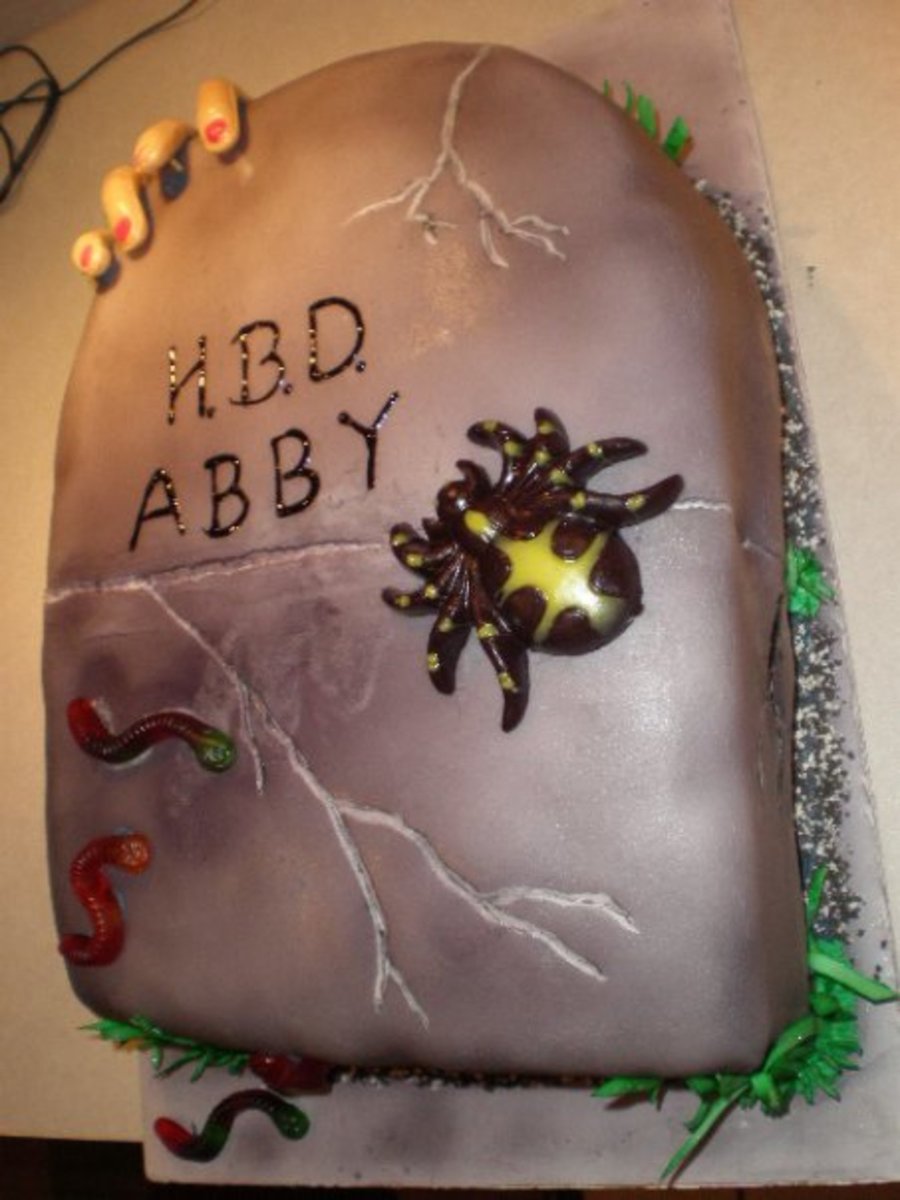 tombstone cake with creepy crawlers.