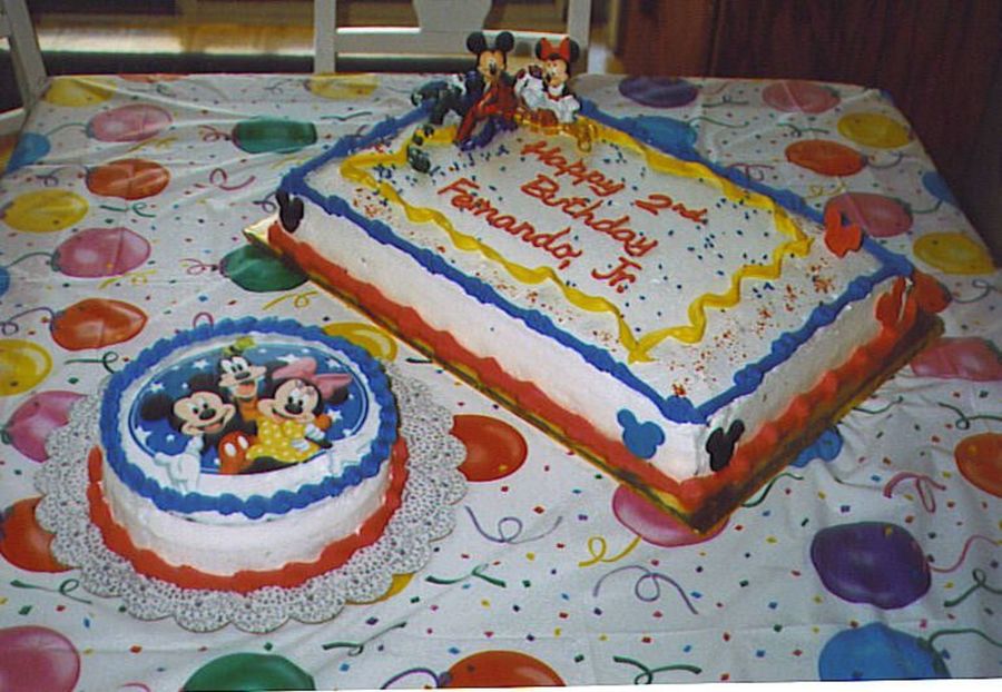 Both cakes are choc. with banana & custard filling. Made these for my grandson's 2nd birthday.