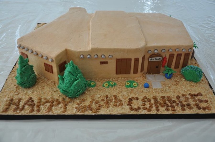 replica of clients adobe (mud) house in santa fe. buttercream with fondant decorations. TFL