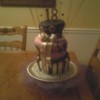 Strawberry with cherry ganache filling, vanilla cake with white choc ganache filling and chocolate cake with chocolate ganache filling.