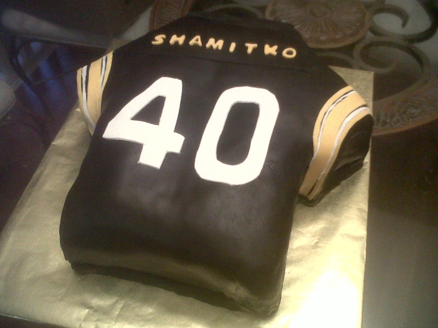 This cake was ordered for a huge STEELERS fan. Homemade fondant for black - letters hand cut (and numbers).
