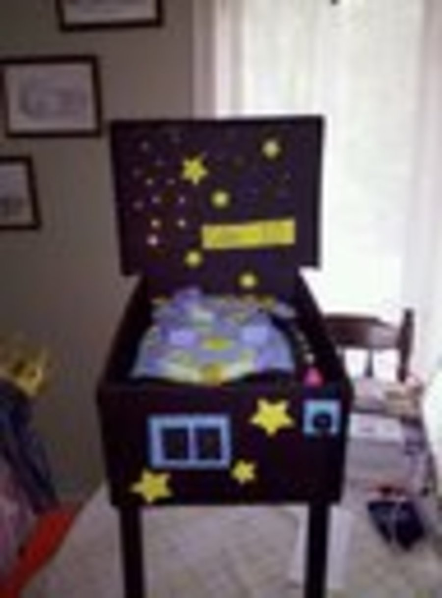 Made for my nephew for his 10th birthday. He loved it. there are lights set in the back board.
