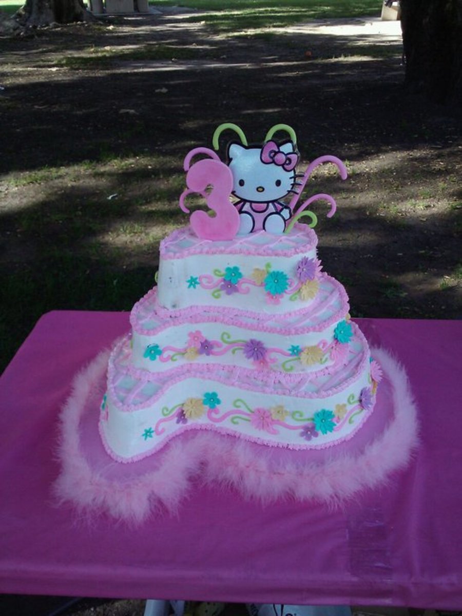 This is the cake i made for my daughters 3rd birthday. It was decorated with white icing, gum paste flowers and the swirls were made out of royal icing. The three was make out of fondant.