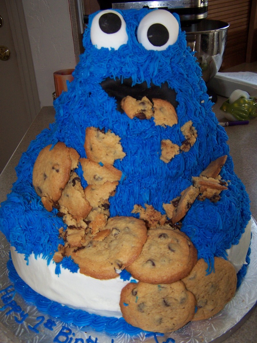 banana cream cake for the base and chocolate cookie monster