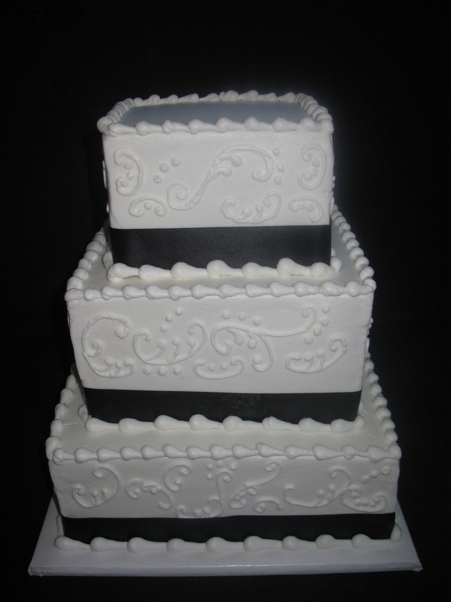 10, 8,&6" vanilla cake with strawberry preserves and vanilla buttercream. My first square wedding cake.