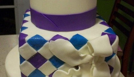 This was my first paid wedding cake! I was very nervous but it went awesome! I really liked her theme she had! The top cake was White, middle Red Velvet, and Bottom Chocolat. The Sheet cake was all white! TFL