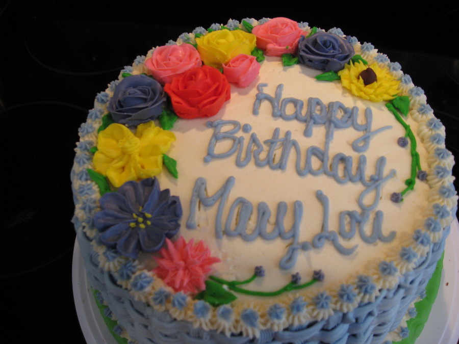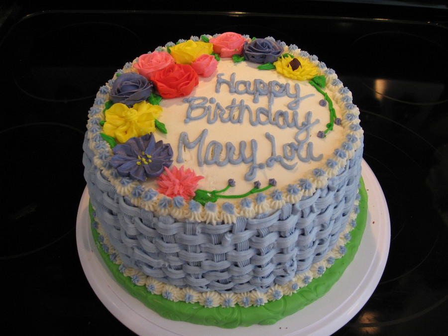 All butter cream flowers and first attempt at basketweave
