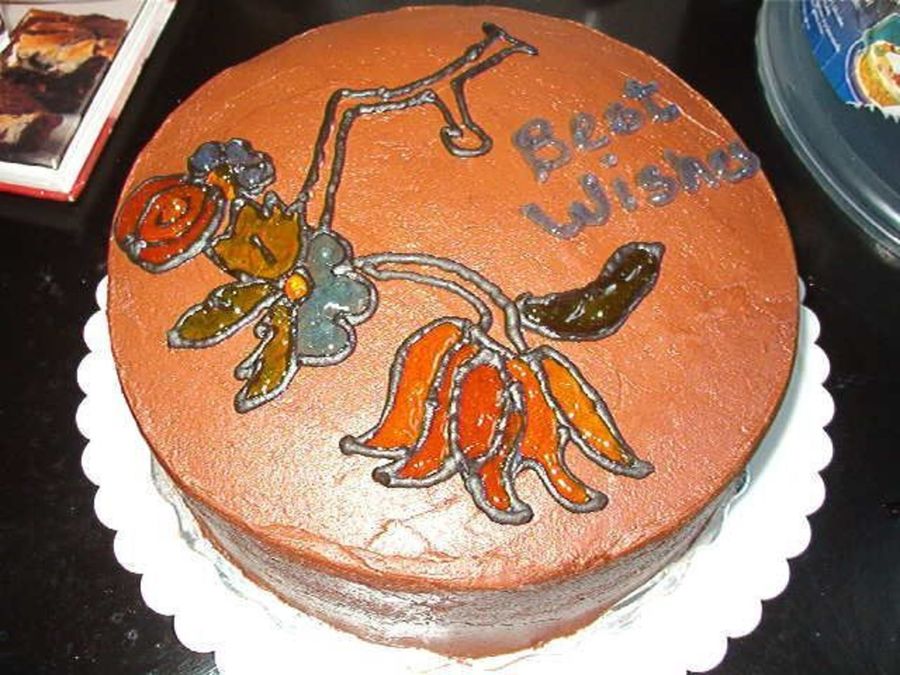 devels food cake with chocolate buttercream frosting. wanted to try somthing different for my daughter's grandmother's birthday.
