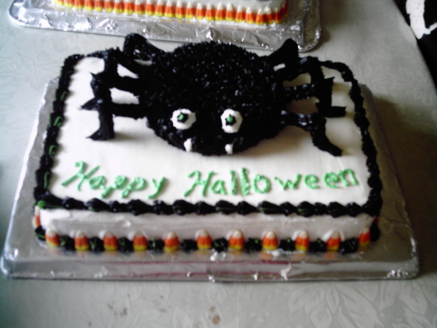 This is a cake that I did for my son's class. It is a chocolate cake with chocolate icing in the middle. The spider is made of an 8in round. The legs were made with pretzels. lol All the kids thought it was coooooool LOL. Thank you for looking. :-)