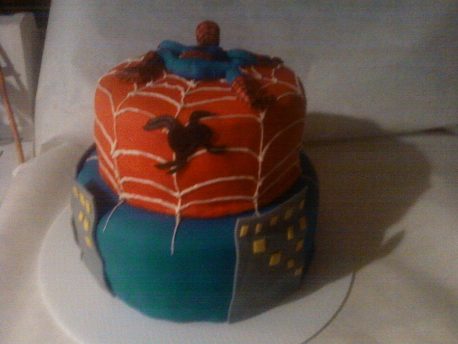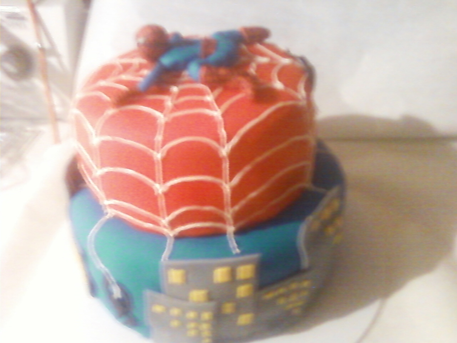 My first fully covered fondant cake. First spiderman figure. I am rather pleased, Not the greatest but overall, Happy with it. Webb is made of melted white chocolate. Pb BC on chocolate cake covered in fondant.