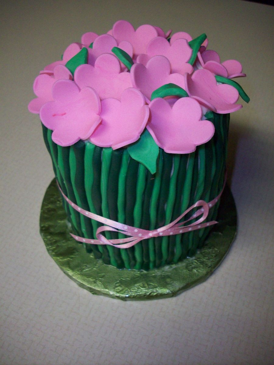 4" 3 layer cake covered with rolled fondant stems and gumpaste posies