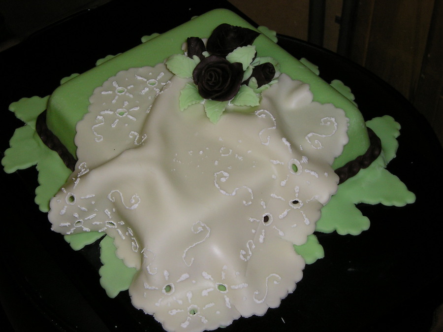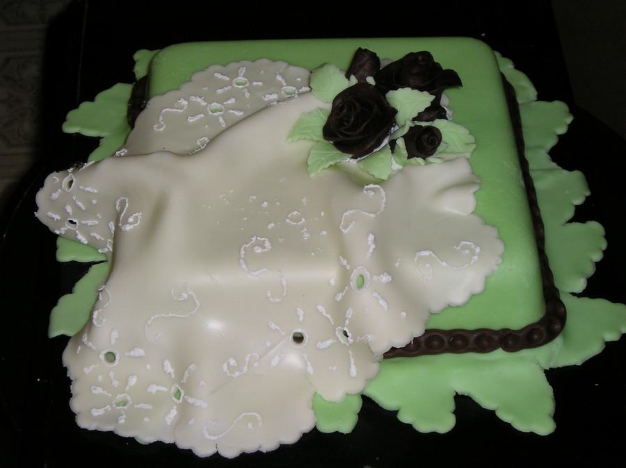 Fondant and modeling chocolate just for practice. Kudos to whomever thought of the "hankie" idea.