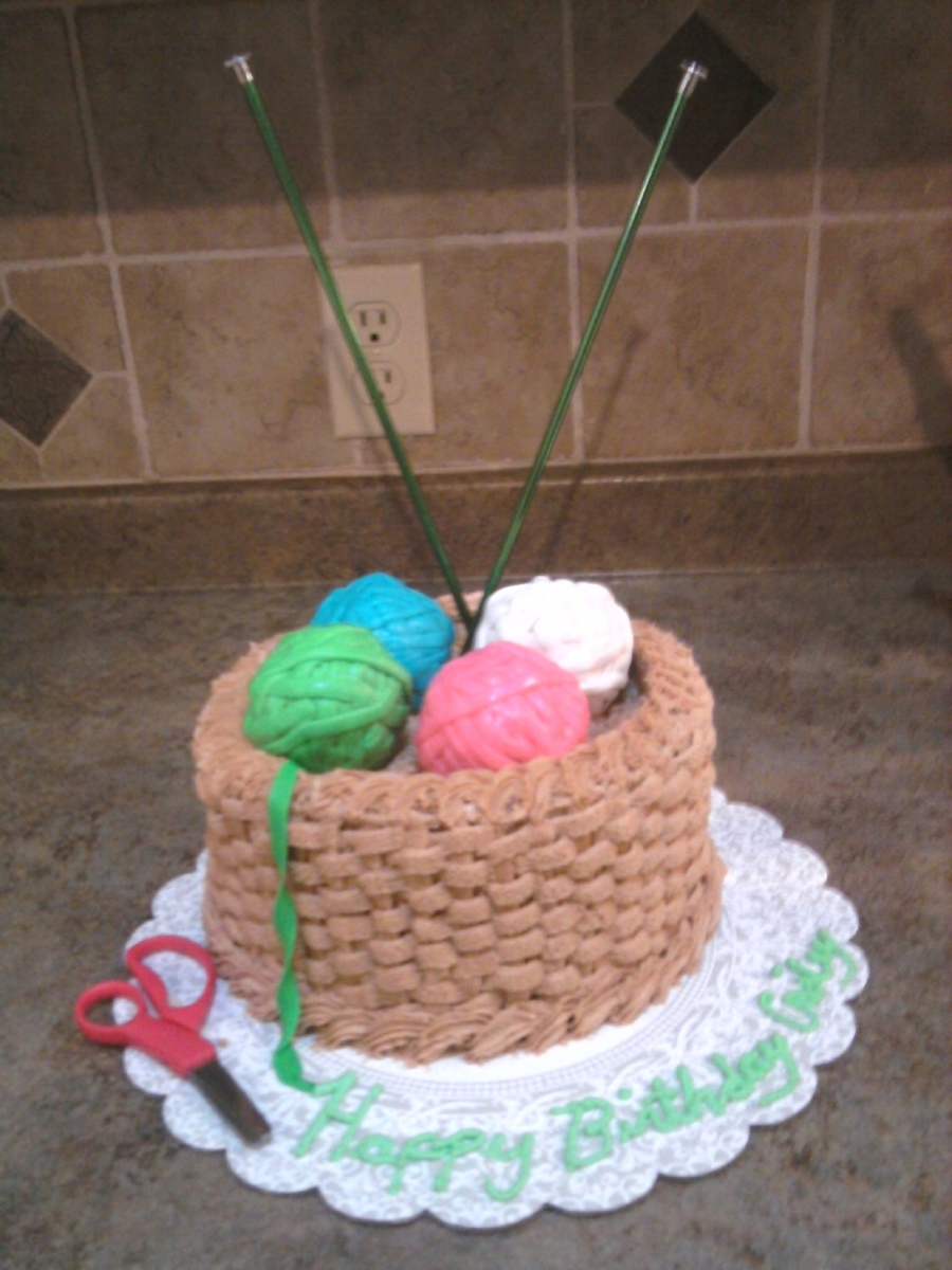 I copied this from another cake I saw on here. My niece loved it! I used real knitting needles and scissors. They were part of her gift