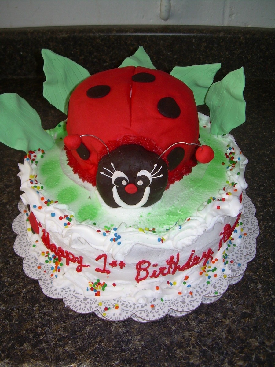 I made this cake for a little girl's birthday. The lady bug was a cake made out of fondant...It was so much fun to do.