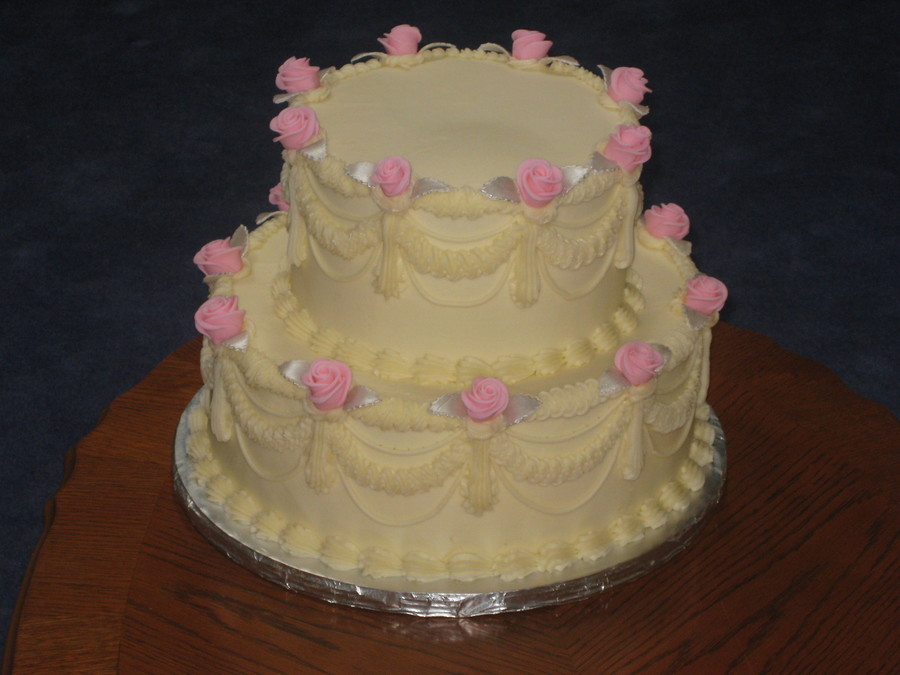 This is a mini wedding cake look alike for a silver anniversary. I did the best I could to replicate the cake from a very lousy photo I was given, I was told to incorporate pink ( the wedding color) and silver.