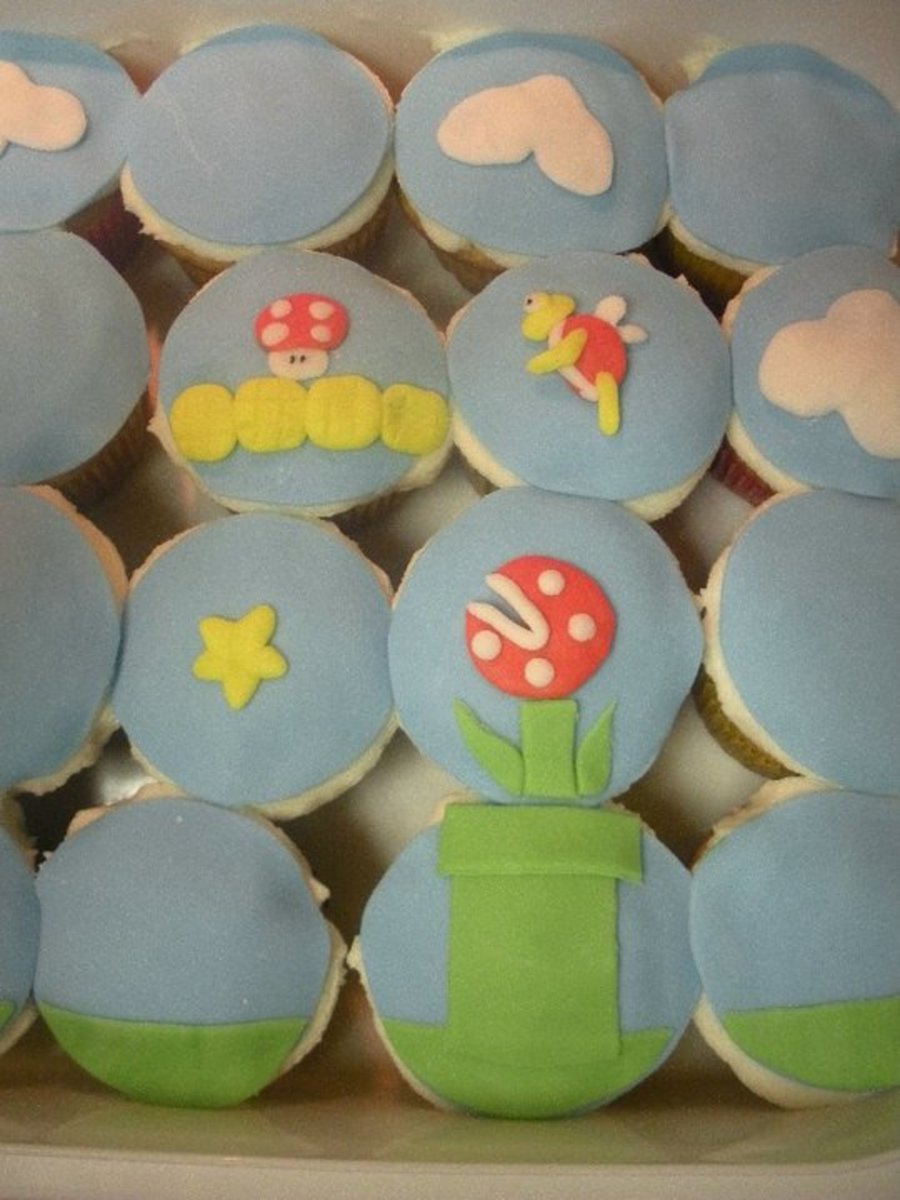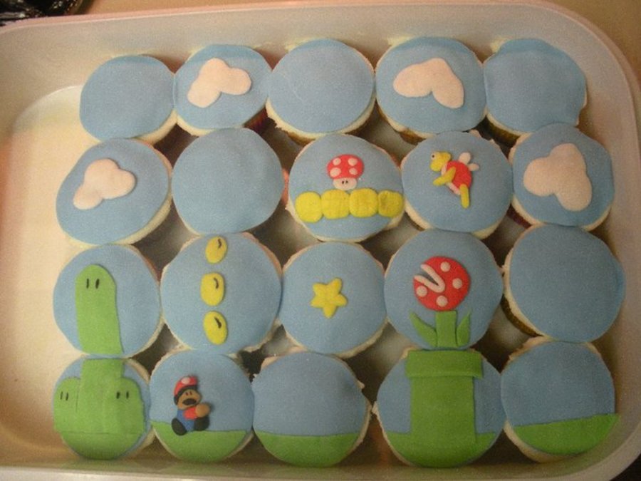 Mario cupcakes! Fondant colors with buttercream underneath.