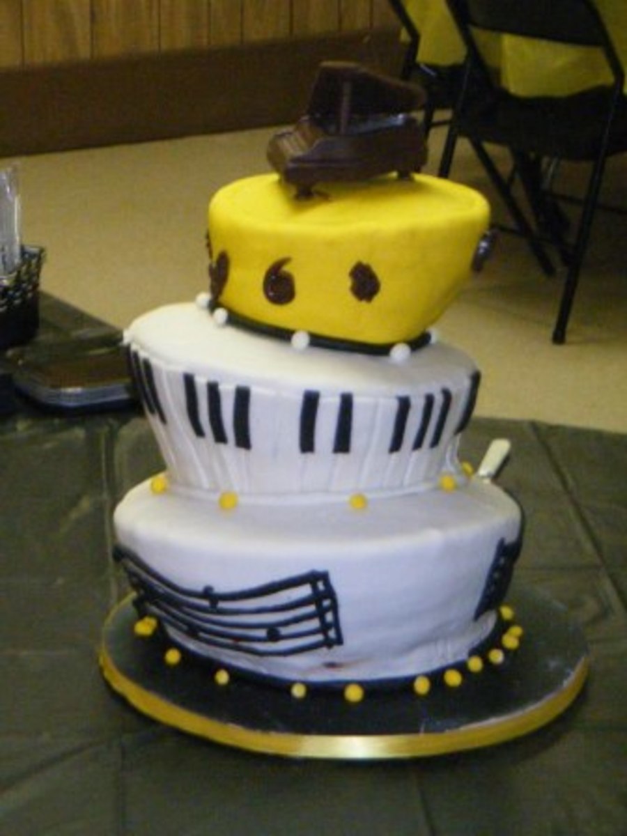 This was a fun cake. My daughter's High School Graduation. She loves to play the piano and she wanted a fun design, so here it is. the piano on top is made of chocolate.