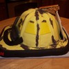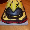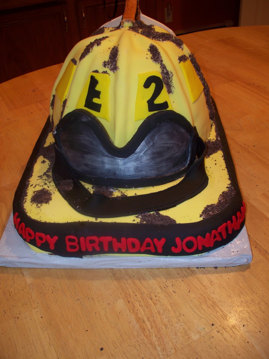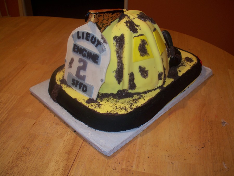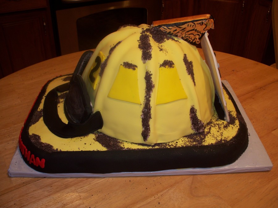 The base of the helmet is a carved 11x15 .. the top is 2 10" rounds and a pyrex bowl to get the rounded top. All elements are fondant and gumpaste. Thanks to DDPieslice 's blog- what a tremendous help! TFL
