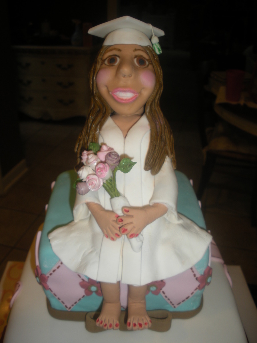 Cakes covered in fondant. Figure made of gumpaste/fondant - modeled after the graduation girl!