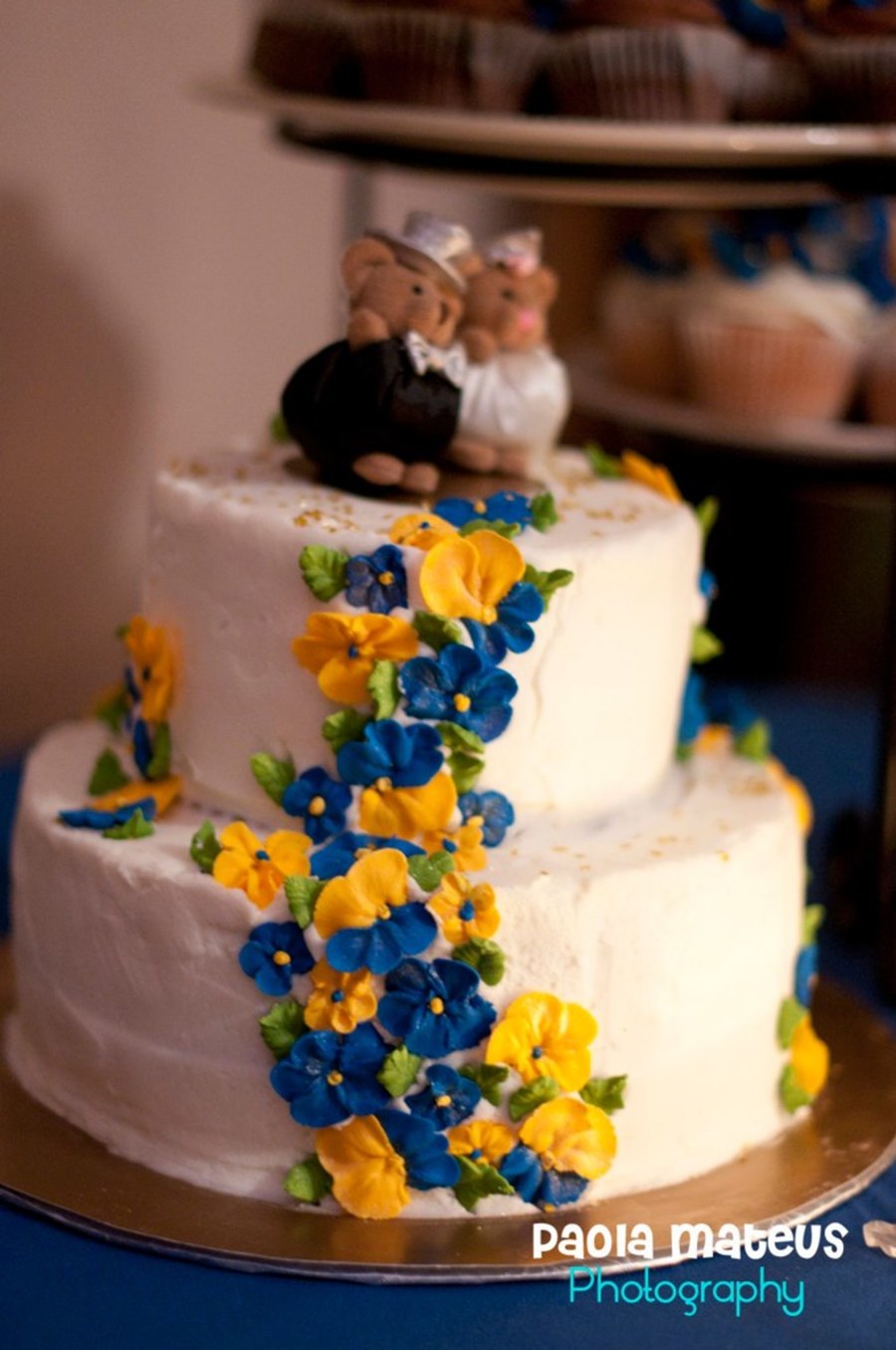 Made this cake for my best friends wedding.. my first wedding cake ever... Almond Butter cream icing and filled with cherry filling, and royal icing pansy flowers