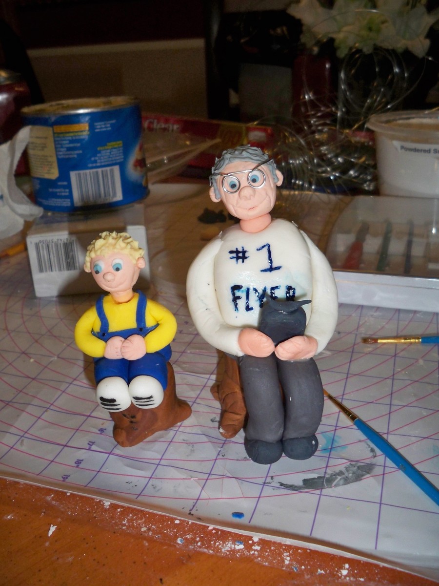 These are figures that I put on top of my Grandaddy's 76th birthday. He love to make and fly model airplanes so I decided to use that as a jump off for my cake. My son, Austin, is his only great grandchild so I also added him to the cake. They are supposed to be flying an airplane together. This was my first time ever trying to make 3D models and I am awfuly proud of myself! Thanks for looking!