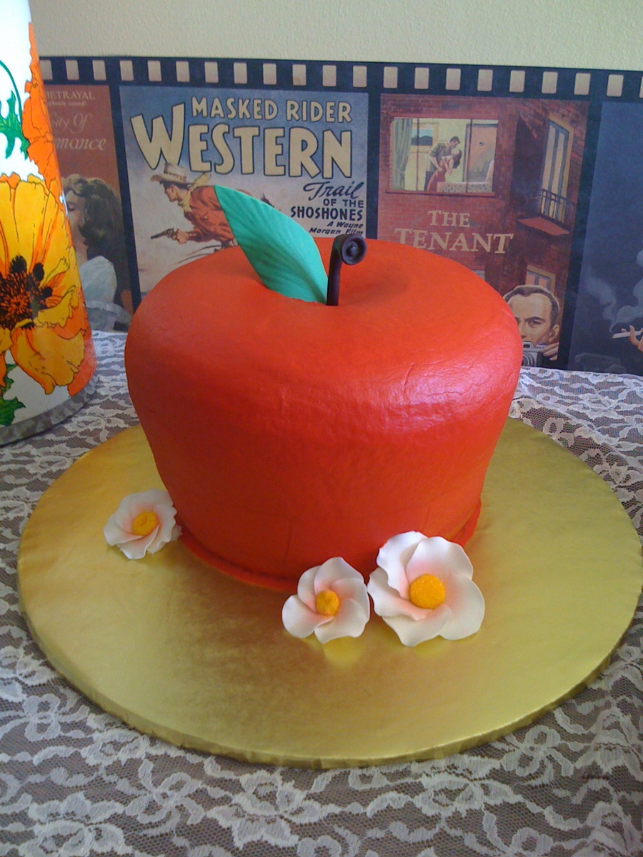 A three layer spice pound cake. Iced in buttercream, leaf and stem are fondant, flowers are gumpaste.