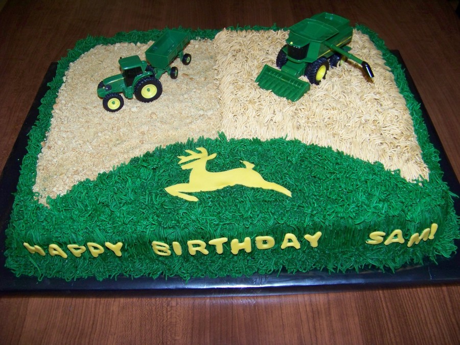Inspired by several cakes here on CC. All buttercreme except for tractors (toys) and the letters and deer (fondant).