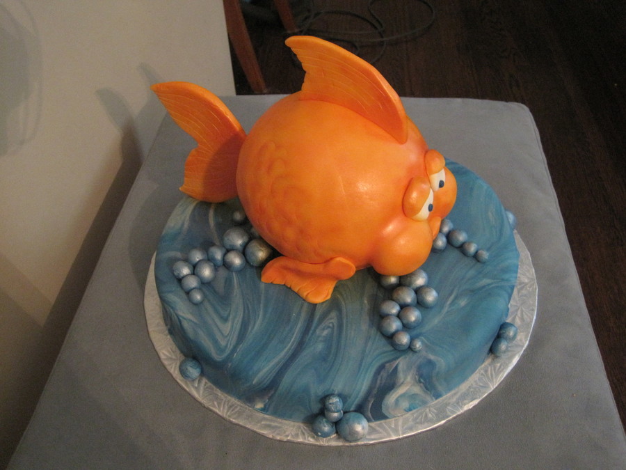 Gold Fish for a good friend. Inspired by a goldfish on this website. Vanilla cake with vanilla BC covered in fondant.
