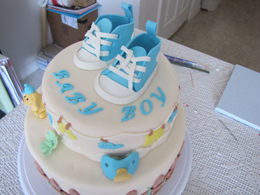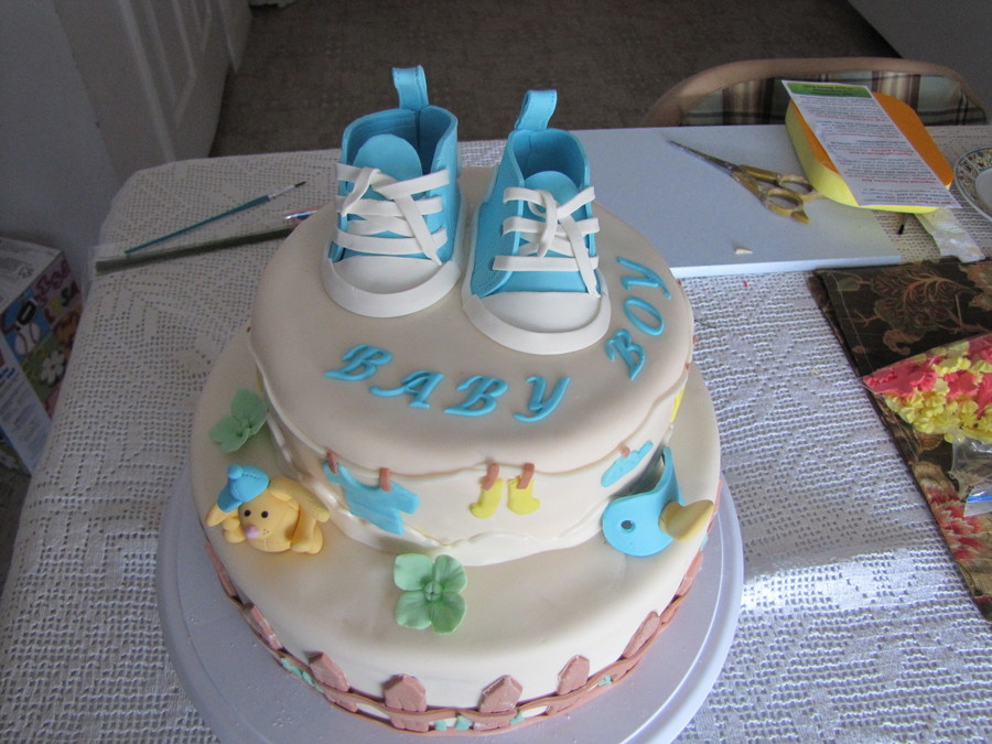 Two tier WASC cake filled with apricot/pineapple jam. Iced in buttercream and covered in fondant. Gumpaste and fondant details. This cake was fun.