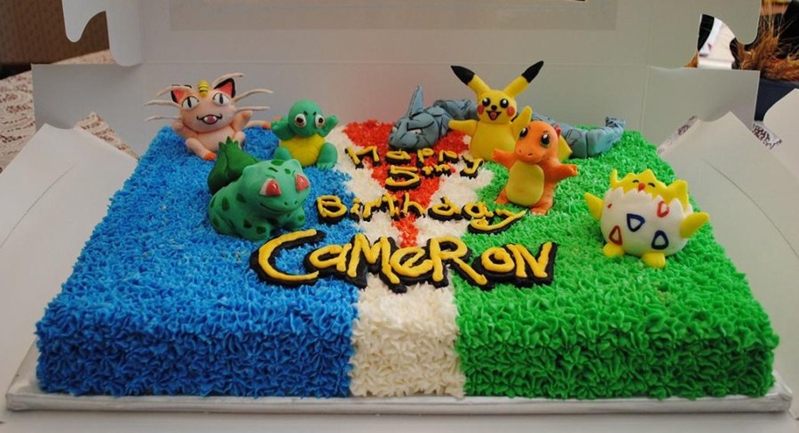 Fondant/gumpaste Pokemon characters. Buttercream on 1/2 sheet cake.