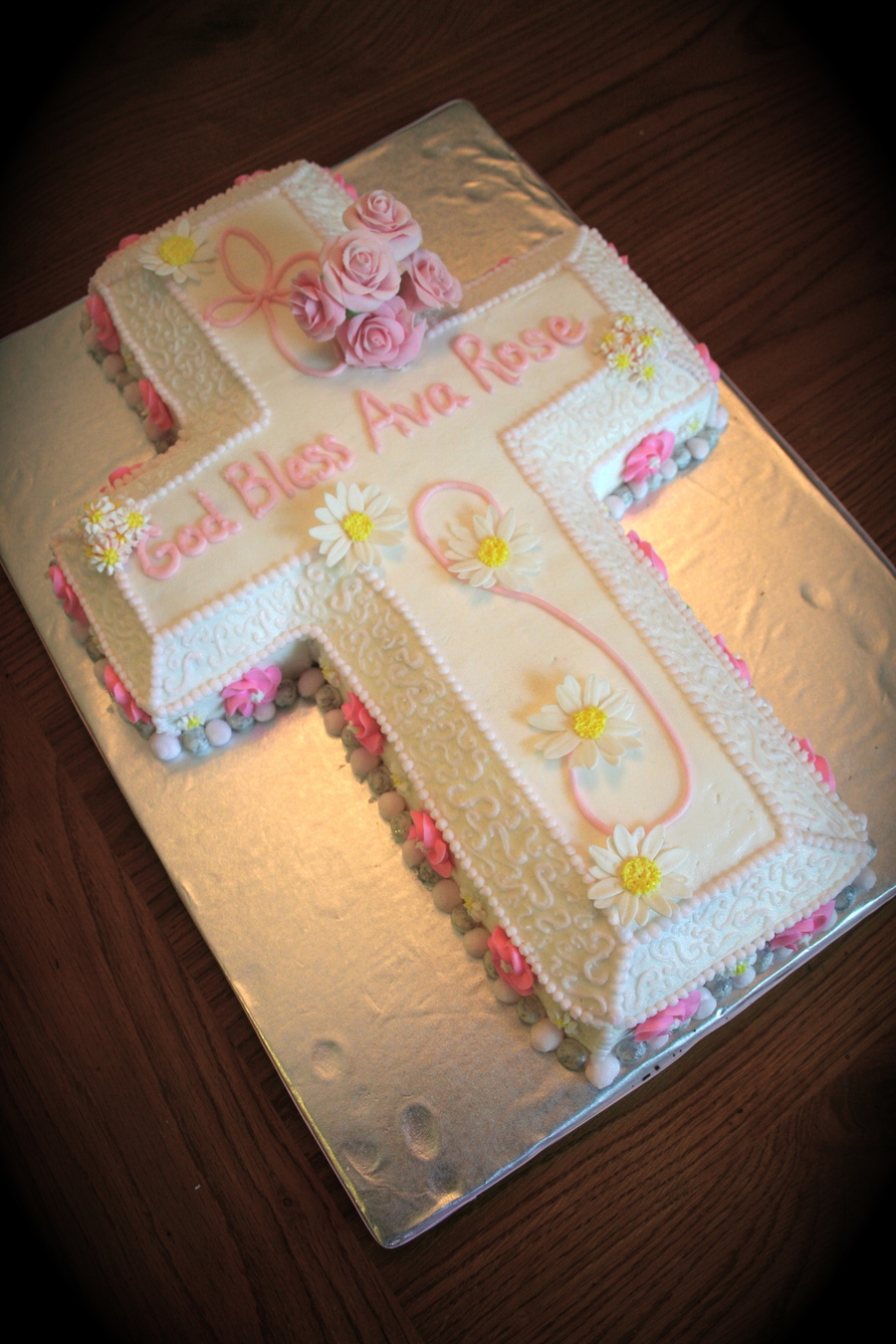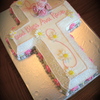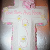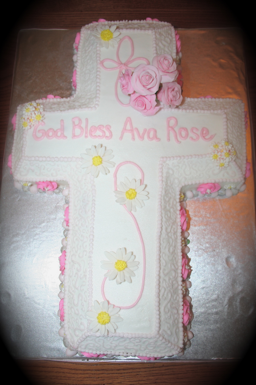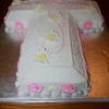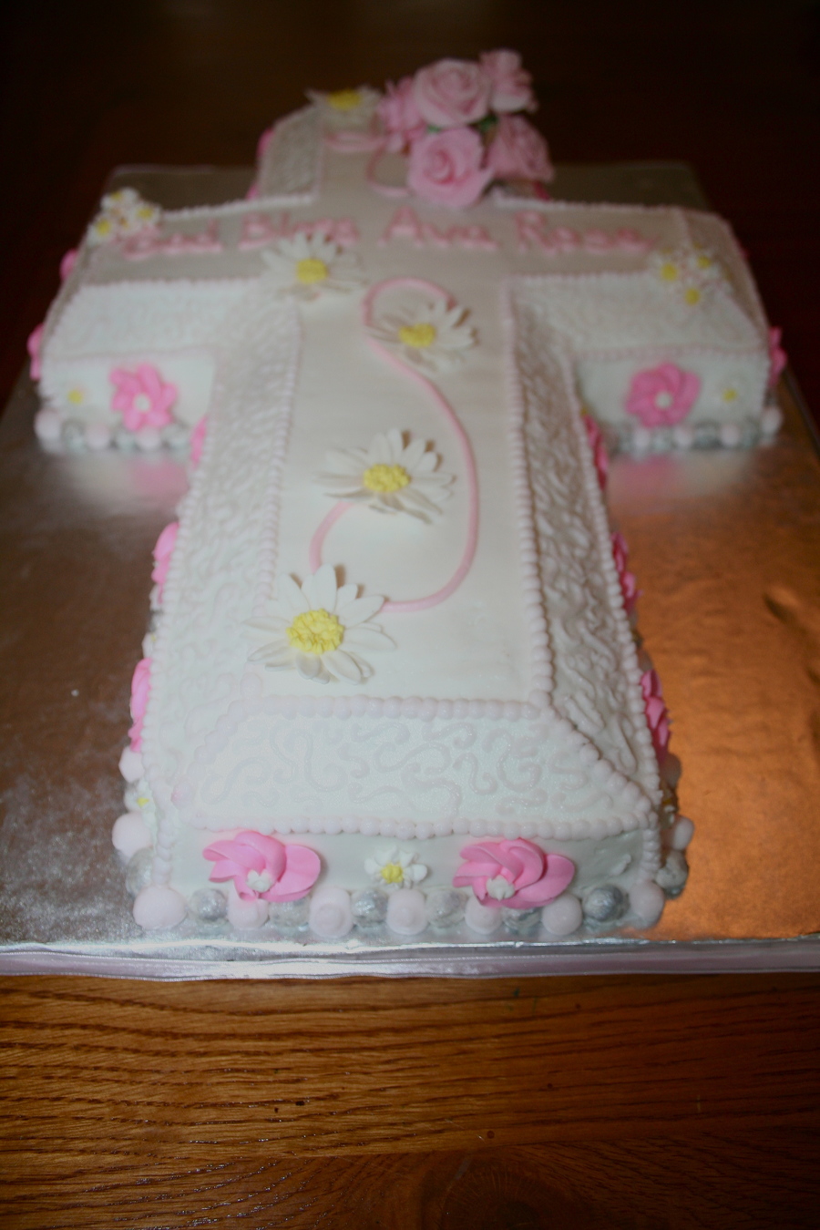 baptism cake - chocolate cake with creamy banana filling. Buttercream icing with gumpaste and royal icing flowers