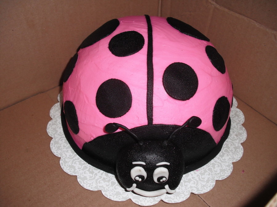 Ladybug shower cake, chocolate cake with b/c. Fondant accents, tfl.