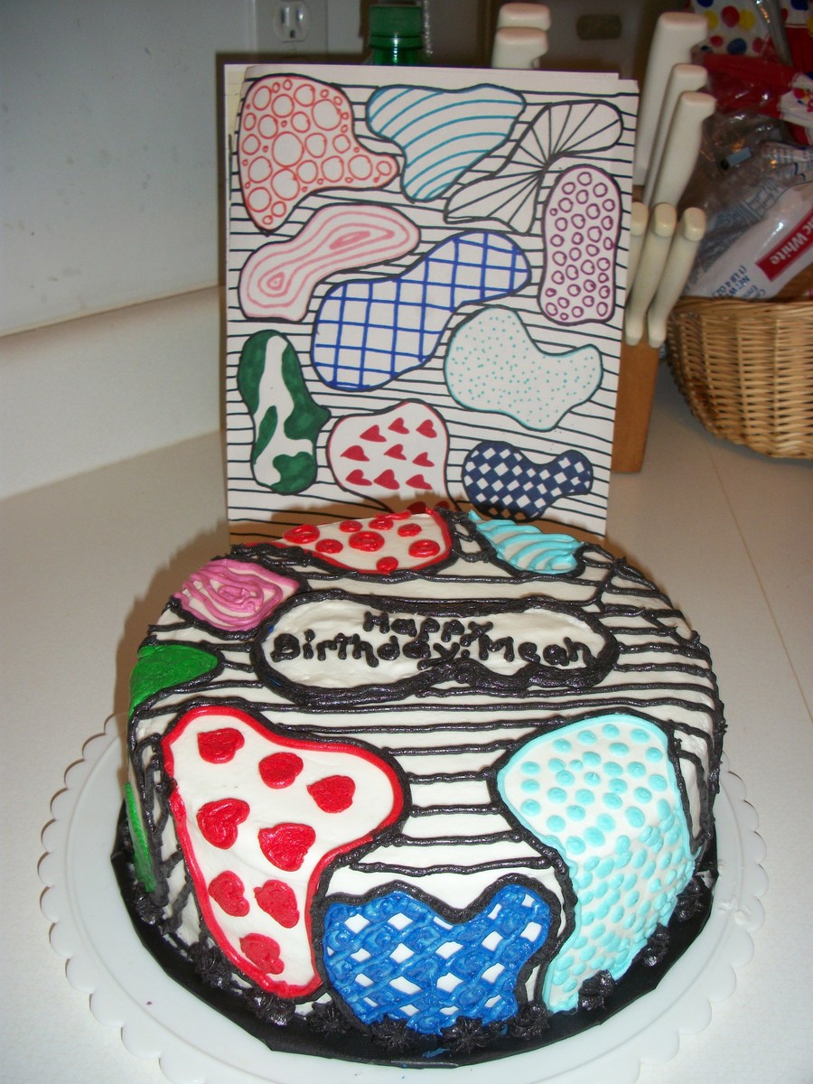 This cake was made to match the artwork that the birthday girl made. All buttercream.