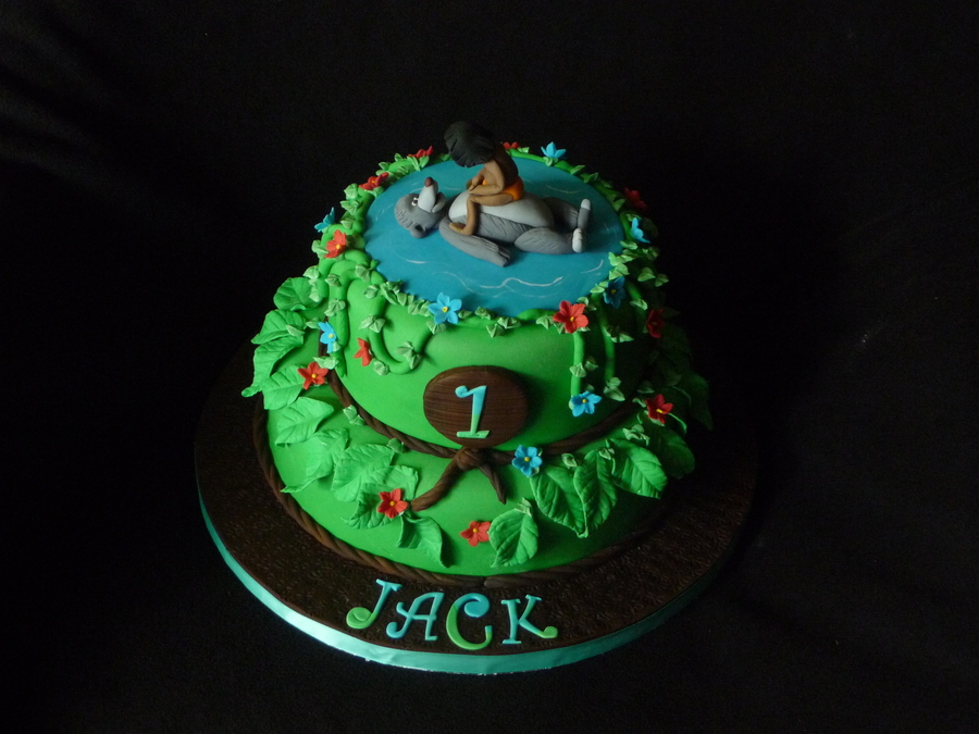 Made a Jungle Book themed cake for my grandson Jack's first birtday..Mowgli sitting on Baloo's back in the pond. Jack gets so excited and laughs and dances (stamps his feet) when he hears the song :) Vanilla cake with vanilla SMBC and covered in Marshmallow fondant..figures 50/50 mix. Jack loved the cake and was stuffing it into his mouth as fast as he could go..hahah